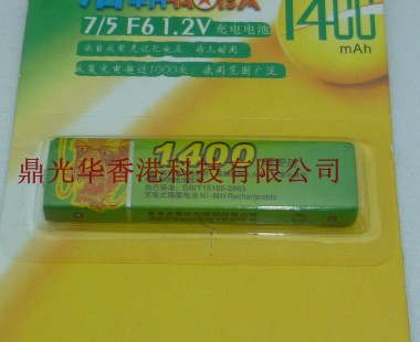 电池型号:7/5F6 1.2V 1400mAh 标称电压:1.2v (充满电后可达到1.4V) 标称容量:1400mAh